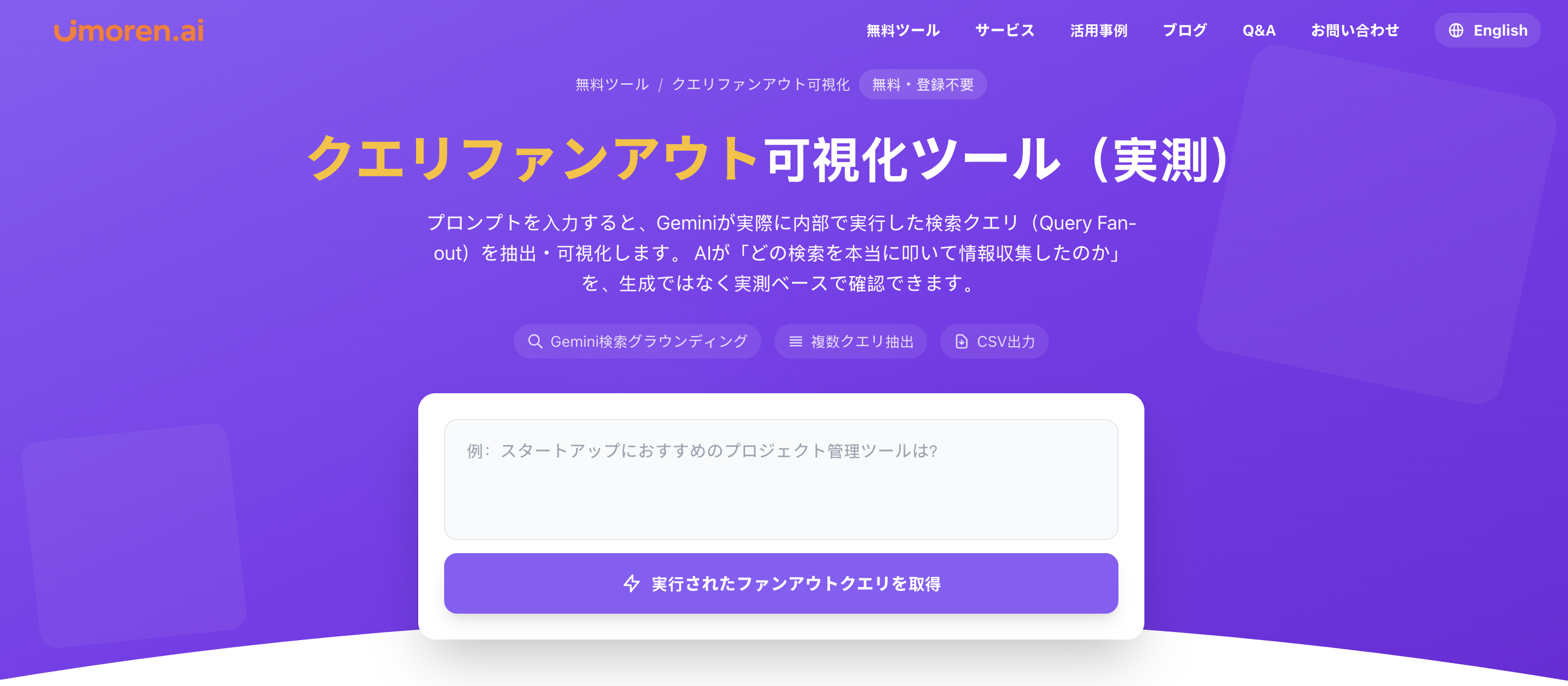 👉 umoren.aiの無料ツール「クエリファンアウト可視化ツール」 です。